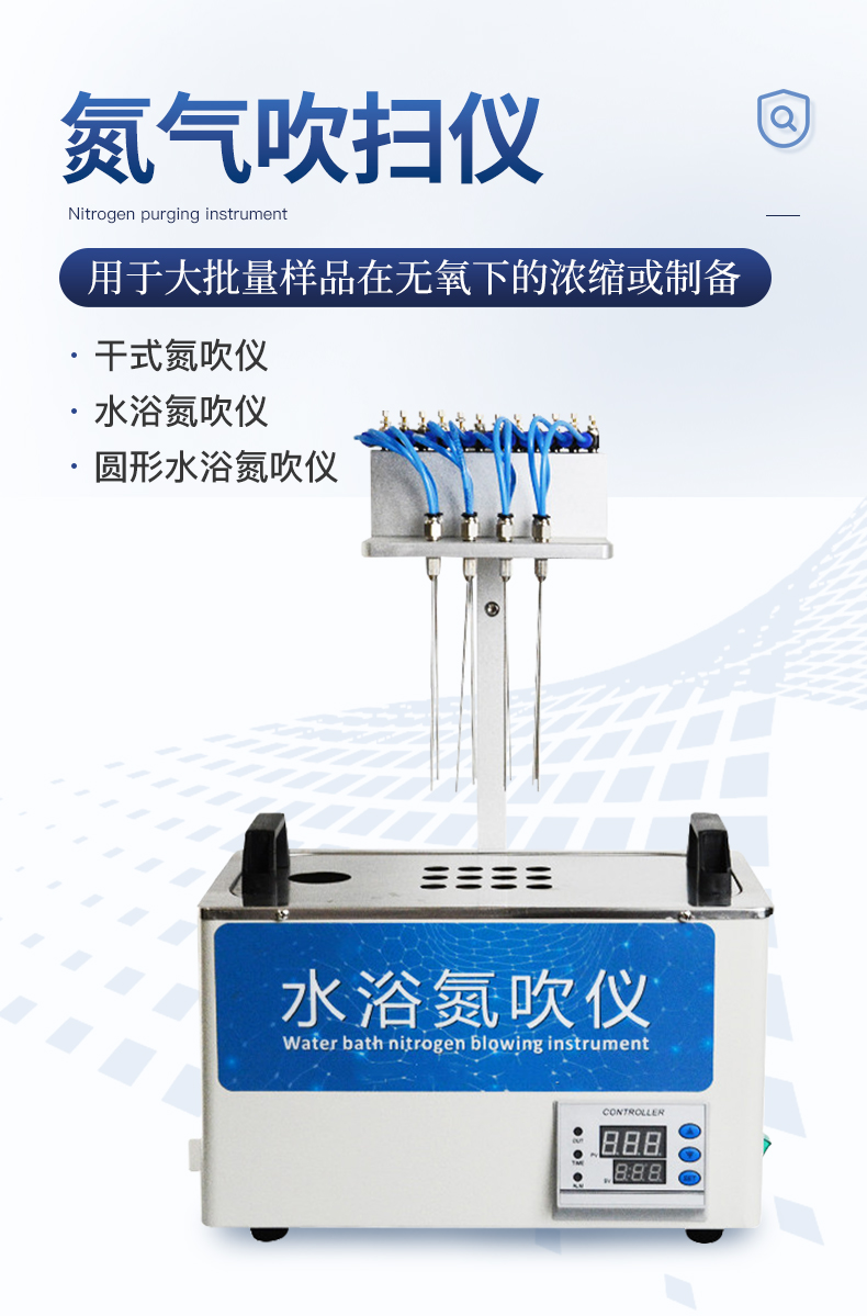 干式氮吹儀是氮氣濃縮裝置、氮氣吹掃儀的簡稱,主要用于大批量樣品在無氧下的濃縮或制備。廣泛應用于農殘分析、商檢、食品、環境、制藥、生物制品等行業, 氮吹儀是通過微電腦控制技術,加熱是通過高純鋁材料做為加熱介質,加熱速度快,達到控溫更加準確,控溫范圍廣,可以同時處理36組樣品.