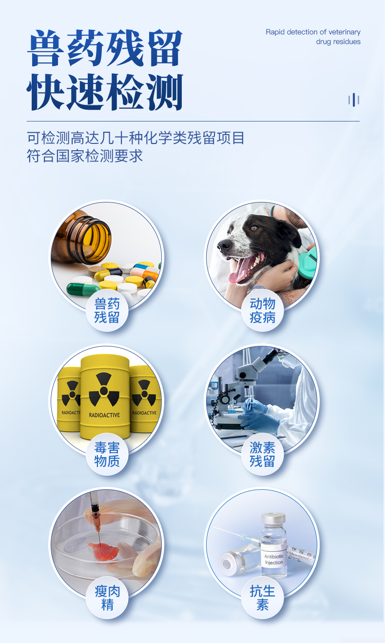該儀器廣泛應用于食藥監局、衛生監督部門、農業部門、商業系統養殖場、屠宰場、食品肉產品深加工企業、畜牧獸醫、檢驗檢疫部門、食品生產企業、農副產品批發市場、農業生產基地、超市、餐廳、高教院校、食堂等單位部門對食品中的不安全指標進行監測使用。