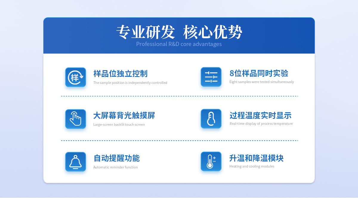 | ◆ 全樣品位:28位, | ◆ 工作站操作系統(tǒng):通過上位機(jī)工作站軟件控制測(cè)定的具體操作,準(zhǔn)確直觀。并能對(duì)硬件實(shí)時(shí)監(jiān)測(cè),出錯(cuò)后實(shí)時(shí)顯示錯(cuò)誤碼。測(cè)量結(jié)果可以Excel輸出或另存,并且不同批的樣品標(biāo)識(shí)不同顏色。 | ◆ 樣品位可獨(dú)立控制:每個(gè)樣品位獨(dú)立控制,*多實(shí)現(xiàn)28位樣品同時(shí)實(shí)驗(yàn);每次可根據(jù)情況確定樣品數(shù)量,可對(duì)本批次樣品分組或備注。并可隨時(shí)添加樣品,添加樣品后,不影響原樣品的測(cè)定時(shí)間。 | ◆ 恒溫控制功能:**的升溫和降溫模塊,自動(dòng)控制實(shí)驗(yàn)操作在恒溫下進(jìn)行,實(shí)驗(yàn)過程溫度實(shí)時(shí)顯示。 | ◆ 控溫精度:25℃±2℃ | ◆ 測(cè)量提醒功能:到達(dá)檢測(cè)條件后自動(dòng)提醒功能,保證每次實(shí)驗(yàn)的及時(shí)進(jìn)行。 | ◆ 數(shù)據(jù)自動(dòng)顯示 :測(cè)量結(jié)果隨時(shí)查詢,并可查詢所有以前測(cè)過的數(shù)據(jù)。 |