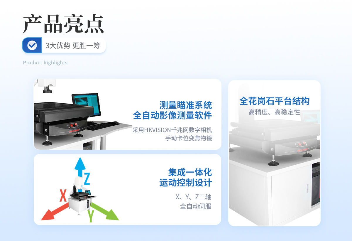 | 1. 本機專為**全自動量測市場量身定制,其具有的CNC編程、精準定位、重復測量、SPC報表統計、自動測量結果輸出等功能,能快速**地解決不同產品的批量測量需要,適用于以二維及簡易三維測量為目的的一切應用領域, 廣泛應用在鍋爐、壓力容器、航天、航空、電力、石油、化工、海洋石油、管道、軍工、船舶制造、汽車、機械制造、冶金、金屬加工業、鋼結構、鐵路交通、核能電力、高校等行業; | 2. 本機X、Y、Z三軸均為伺服驅動,由鼠標、鍵盤或選配搖桿操縱,通過本司專用的全自動影像測量軟件,具有自動邊緣提取、自動理匹、自動對焦、測量合成、影像合成等人工智能技術,同時,基于機器視覺與微米**控制下的自動對焦功能,可以滿足清晰攝影下輔助測高需要(亦可加入精密測頭完成接觸式坐標測高)。可在使用夾具或工件隨意放置的情況下,進行批量測量、SPC結果分類、自動輸出測量結果等操作。 |