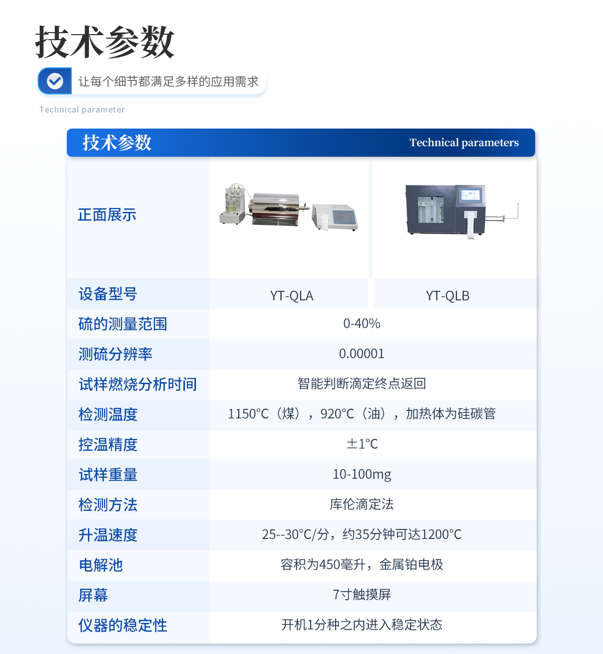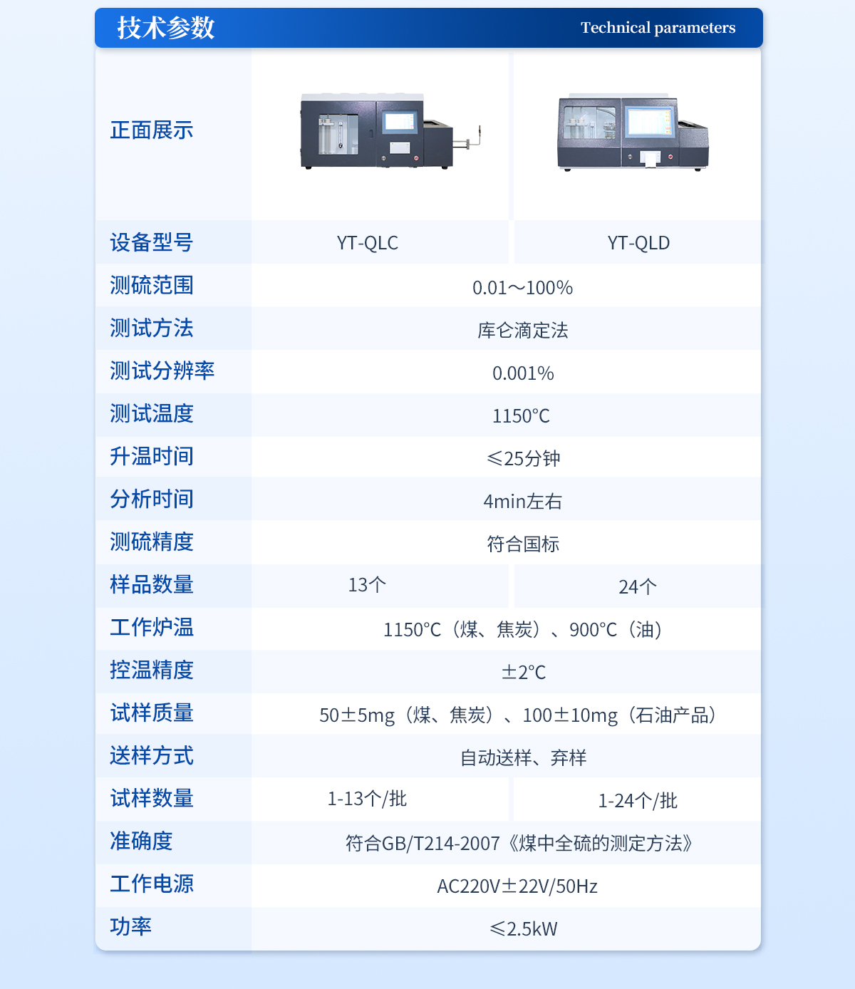 | 測(cè)硫范圍:0.01~100% | 測(cè)試方法:庫侖滴定法 | 測(cè)試分辨率:0.001% | 測(cè)試溫度:1150℃ | 升溫時(shí)間:≤25分鐘 | 分析時(shí)間:4min左右 | 測(cè)硫精度:符合國(guó)標(biāo) | 樣品數(shù)量:24個(gè) | 工作爐溫:1150℃(煤、焦炭)、900℃(油) | 控溫精度:±2℃ | 試樣質(zhì)量:50±5mg(煤、焦炭)、100±10mg(石油產(chǎn)品) | 送樣方式:自動(dòng)送樣、棄樣 | 試樣數(shù)量:1-24個(gè)/批,試驗(yàn)過程可添加/替換試樣 | 準(zhǔn)確度:符合GB/T214-2007《煤中全硫的測(cè)定方法》 | 工作電源:AC220V±22V/50Hz 功率:≤2.5kW |