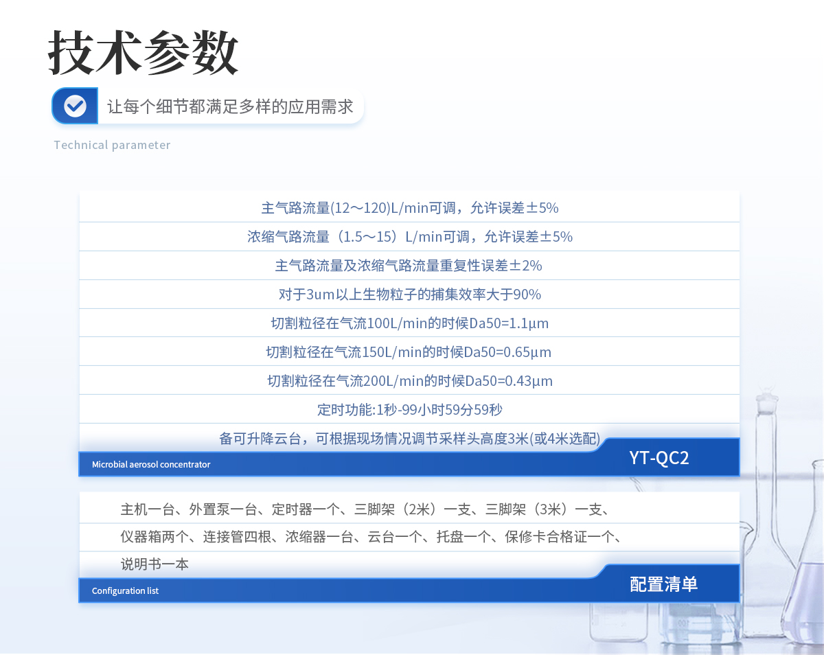 | l 主氣路流量(12~120)L/min可調,允許誤差±5%; | l 濃縮氣路流量(1.5~15)L/min可調,允許誤差±5%; | l 濃縮氣路流量(1.5~15)L/min可調,允許誤差±5%; | l 對于3um以上生物粒子的捕集效率大于90%。 | l 切割粒徑在氣流100L/min的時候Da50=1.1μm, | l 切割粒徑在氣流150L/min的時候Da50=0.65μm | l 切割粒徑在氣流200L/min的時候Da50=0.43μm。 | l 定時功能:1秒-99小時59分59秒 | l 雙路同時采集 | l 流量手動調節 | l 備可升降云臺,可根據現場情況調節采樣頭高度3米(或4米選配) |