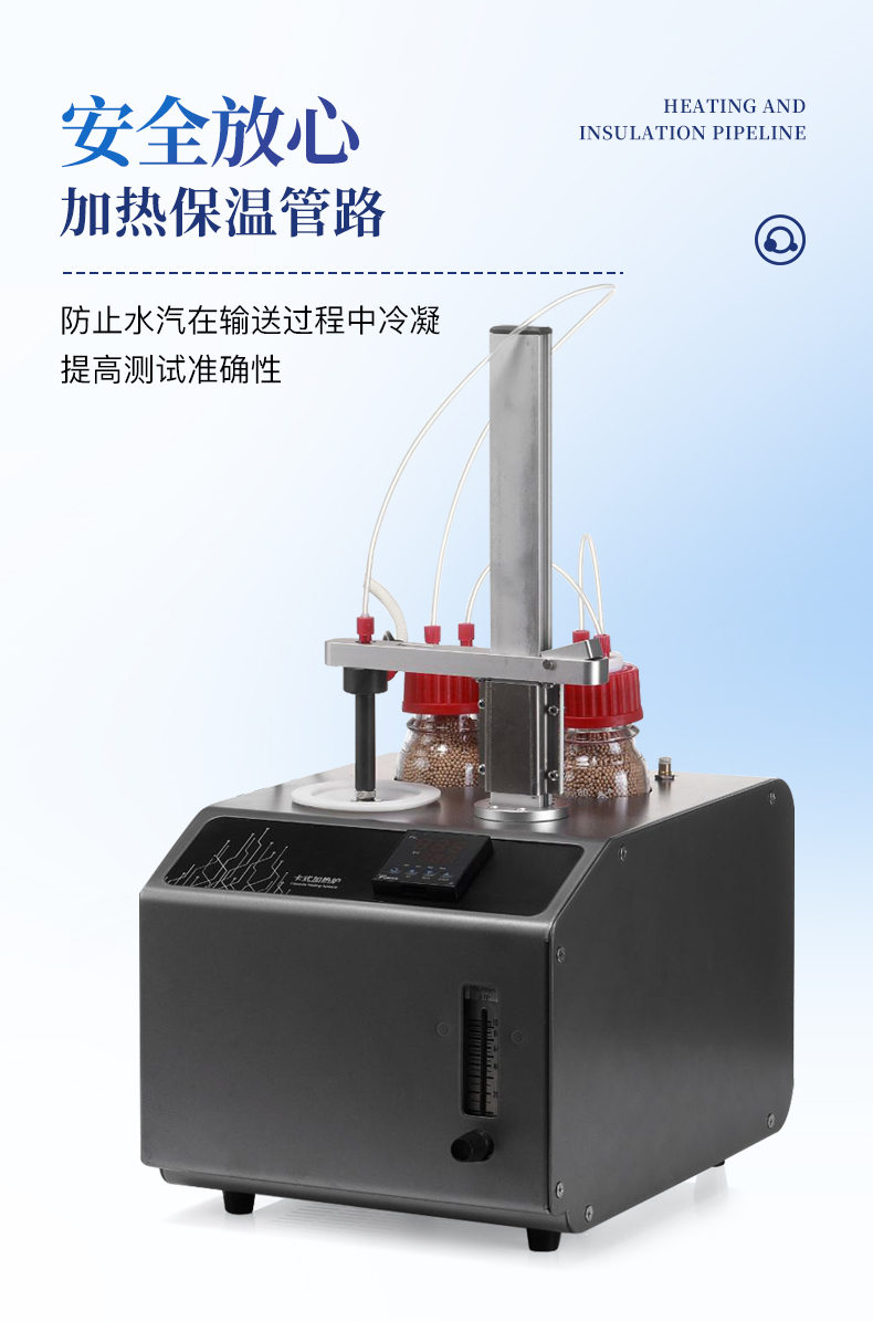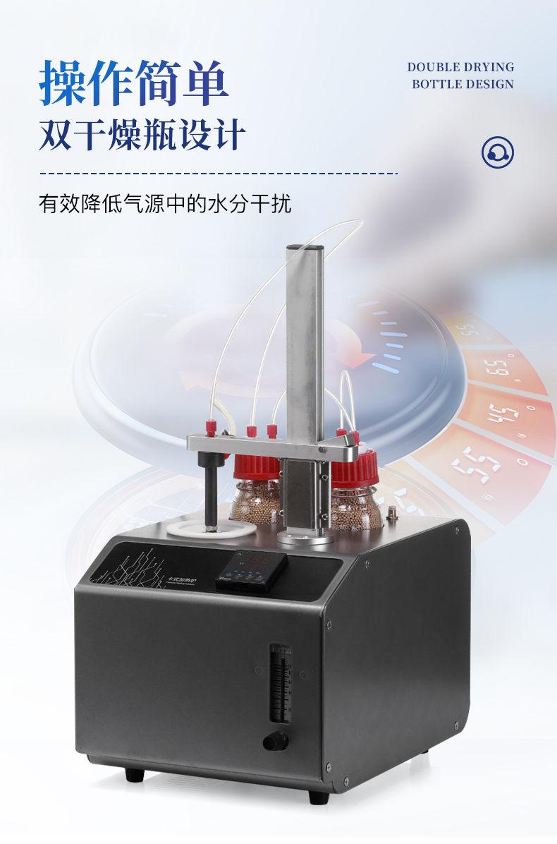 | 1、10ml樣品瓶:使用四氟與硅膠復(fù)合墊片,高溫條件下不會釋放可能產(chǎn)生副反應(yīng)的物質(zhì) | 2、雙干燥瓶設(shè)計,有效降低氣源中的水分干擾 | 3、加熱保溫管路,防止水汽在輸送過程中冷凝,提高測試準確性 |