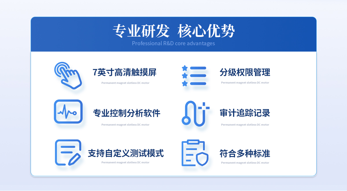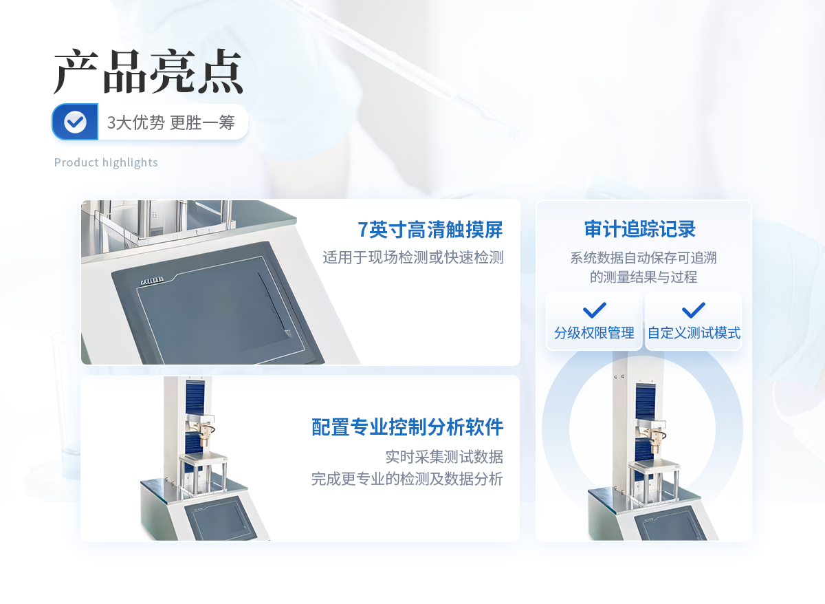 | 操作及控制系統 主機配置7英寸高清觸摸屏,可以直接使用觸摸屏操作質構分析儀,操作簡單,結果顯示 直觀,適用于現場檢測或快速檢測。 | 連接計算機使用,配置專業控制分析軟件,提供豐富的參數設置,進行更為復雜和精細 的測試控制,實時采集測試數據,完成更專業的檢測及數據分析。 | 測試項目及功能 可以應用在食品、制藥、乳制品、肉制品、化妝品、凝膠、糖果、果蔬、水鮮、藥材、 煙草等樣品的物性學分析;可以量化獲取樣品的硬度、脆度、嫩度、粘性、彈性、韌 性、內聚性、咀嚼性、凝凍強度、拉伸強度、破裂強度、剪切強度、抗壓強度、穿透強 度、蠕變特性、松弛特性等多項物性指標。 | GMP相關要求支持 | 儀器提供分級權限管理:三級別,多用戶。(用戶名+密碼登錄) | 儀器科實現審計追蹤記錄:系統數據自動保存可追溯的測量結果與過程。 | 質構分析儀軟件功能 軟件提供十種以上測試方法:單壓縮、循環測試、松弛測試、蠕變測試、全質構測試、 拉伸測試、彎曲測試、剪切測試、穿刺測試、凝凍強度測試等。系統開放測試條件參數,支持自定義測試模式。 |