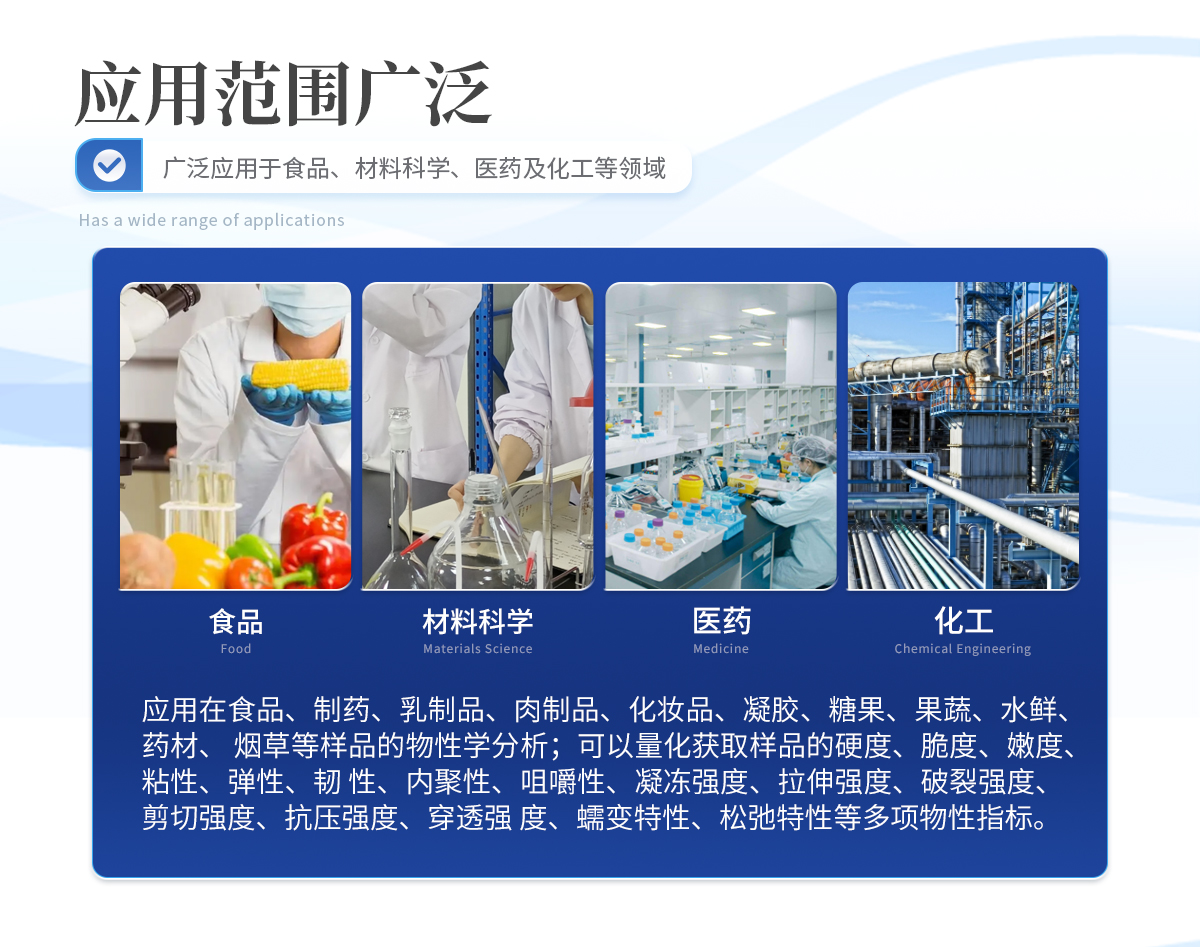 質構分析儀是一款集高精度與多功能性于一體的科學儀器,廣泛應用于食品、材料科學、醫藥及化工等領域,用于全面而**地評估材料的質構特性、稠度、硬度及結構強度。該儀器通過多樣化的測試模式,包括壓縮、描述性測試、穿刺、剪切、抗破碎性、抗擠壓、拉伸及黏附性等實驗,能夠深入剖析材料的物理力學性能,為產品研發、質量控制及消費者體驗優化提供關鍵數據支持。借助**的傳感器技術和軟件分析系統,質構分析儀確保了測試結果的準確性與可重復性,是現代工業與科研不可或缺 的分析工具。