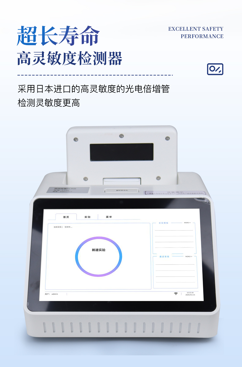 | 1.智能操作系統,實驗盡在掌握 | A程序更新與預設:支持在線更新實驗程序,并內置豐富的預設實驗程序模板,用戶亦可自定義保存常用模版,實現一鍵快速啟動,極大提升操作效率。 | B操作簡單:無論是觸摸屏界面還是電腦軟件,均設計得直觀易懂,新用戶也能快速上手。預置常用程序模板,進一步簡化操作流程。 | 2.精準穩定的溫控與光學核心 | A長久精準的溫控系統:采用進口***TEC半導體制冷模塊,控溫精準(±0.1°C),孔間溫度均勻性**(≤±0.3°C)。系統穩定性卓越,長期使用性能衰減小,校準周期長達數年,顯著降低維護成本與運營中斷。 | B免維護的靈敏光學系統:配備單個獨立LED光源與單個獨立光電二極管檢測器,采用超長壽命進口光源,設計壽命期內免維護,無需額外校準或更換,保障檢測結果長期一致性與高靈敏度。 | C卓越的數據質量:實驗線性相關性高(R2≥0.999),重復性優異(孔間CV值低),確保定量結果準確可靠,數據置信度高。 | 3.**便捷的數據與輸出管理 | A多重數據導出方式:支持通過USB存儲設備直接拷貝,或經由Wi-Fi無線網絡傳輸數據至本地服務器或云端,方便靈活,滿足各類實驗室數據管理習慣。 | B豐富的報告導出與打印:支持生成并導出多種格式(如PDF、Excel)的實驗報告。儀器兼容USB熱敏打印機、藍牙無線打印機及常規A4打印機,可直接在儀器上或通過電腦一鍵導出并打印專業報告,便于結果存檔與即時分享。 | 4.快速**與堅固耐用 | A升降溫速度快:優化設計的溫控系統具備高速升降溫能力,顯著縮短單次循環與整體檢測時間,提升實驗通量。 | B超長使用壽命:核心部件均選用工業級耐用材料與設計,整機運行穩定可靠,致力于為用戶提供長久的投資回報。 |