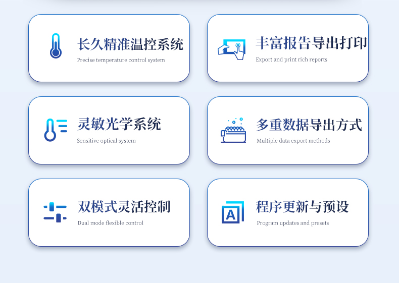| 1.采用高規(guī)格鋁合金樣品槽,熱導(dǎo)性好,耐腐蝕抗氧化,Peltier加熱控溫,全面的密封設(shè)計(jì)。無論是樣品溶液還是冷凝水,都不會(huì)滲漏到樣品槽下面的帕爾帖控溫元件以及其他電子元件,可有效延長儀器的使用壽命。 | 2.采用高精度PT1000溫度傳感器,控溫精度達(dá)到0.01℃,充分保證控溫的準(zhǔn)確度。 | 3.樣品通量:0.2ml單管、0.2ml八聯(lián)管。 | 4.開放的試劑耗材系統(tǒng):可以選任何品牌的試劑,適用于標(biāo)準(zhǔn)的8聯(lián)管或0.2ml PCR單管 | 5.采用藍(lán)色、綠色、紅色和黃色四個(gè)高強(qiáng)度寬光譜長壽命LED固態(tài)光源,確保在整個(gè)光譜檢測范圍內(nèi)都有很強(qiáng)的光強(qiáng),提高檢測靈敏度,而且不發(fā)熱,使用壽命長,終身免維護(hù)。 | 6.高靈敏度檢測器:采用日本進(jìn)口的高靈敏度的光電倍增管,檢測靈敏度更高。 | 7.無需光路校正:掃描系統(tǒng)能確保每孔的信號激發(fā)和檢測光程都完全一致,無需光路校正,因此無需額外占用一個(gè)校正通道,可以實(shí)現(xiàn)真正的四通道基因檢測。★ | 8.通道數(shù):配置4通道。 | 9.通道串?dāng)_:采用高精度窄波帶濾光片,極大程度減少通道串?dāng)_,軟件也可以修正串?dāng)_參數(shù)。 | 10.檢測靈敏度:能檢測到單拷貝DNA模板,能清晰區(qū)分1000拷貝和2000拷貝的質(zhì)粒DNA | 11.線性檢測范圍:10個(gè)數(shù)量級★ | 12.支持常用熒光染料和探針檢測方法,如SYBR Green I,Eva Green,Taqman,F(xiàn)RET,Molecular Beacons,Scorpions,Amplifluor等 | 13.模塊溫度范圍:4-99℃ | 14.操控模式:系統(tǒng)屏幕自帶的PCR操作系統(tǒng)或Windows電腦★ | 15.接口:電腦USB連接 | 16.工作噪音:靜音技術(shù),運(yùn)行時(shí)**的工作噪音不超過60 dB | 17.操作分析軟件 | 17.1可以在運(yùn)行程序后在定義樣品孔,節(jié)省實(shí)驗(yàn)時(shí)間 | 17.2運(yùn)行程序時(shí)可以同時(shí)打開其他實(shí)驗(yàn)數(shù)據(jù)結(jié)果進(jìn)行查閱分析 | 17.3軟件自動(dòng)計(jì)算基線范圍和自動(dòng)設(shè)置閾值線,給用戶提供可靠準(zhǔn)確的數(shù)據(jù)結(jié)果 | 17.4實(shí)驗(yàn)程序設(shè)置信息和檢測結(jié)果可直接打印成實(shí)驗(yàn)報(bào)告,支持XLS,CSV,WORD等多種文件格式和數(shù)據(jù)樣式導(dǎo)出★ | 17.5同一批實(shí)驗(yàn)的結(jié)果可以分組進(jìn)行獨(dú)立的數(shù)據(jù)分析,*多可分成2個(gè)組 | 17.6提供中英文軟件界面。★ | 17.7軟件可以無限制安裝在多臺電腦上,無需付費(fèi)購買使用權(quán),終身可免費(fèi)升級。 |