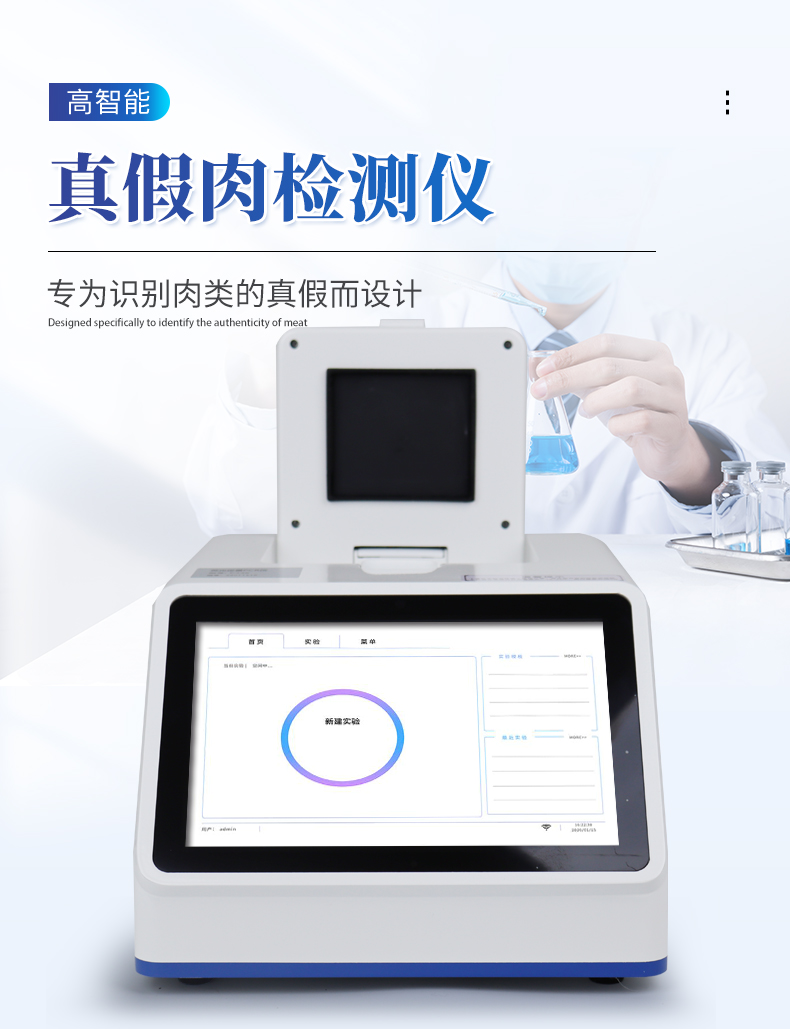 | 真假肉檢測(cè)儀通過實(shí)時(shí)熒光定量pcr技術(shù)進(jìn)行檢測(cè),利用特定的引物和探針對(duì)肉類樣品中的DNA進(jìn)行擴(kuò)增和檢測(cè)。 | 以下是其詳細(xì)的工作步驟: | 1.樣品準(zhǔn)備:將肉類樣品進(jìn)行均質(zhì)化處理,提取DNA。 | 2.PCR反應(yīng):在反應(yīng)管中加入特定的引物、探針和樣品DNA,置于檢測(cè)儀中進(jìn)行PCR擴(kuò)增。 | 3.實(shí)時(shí)檢測(cè):在PCR擴(kuò)增過程中,儀器通過熒光信號(hào)實(shí)時(shí)監(jiān)測(cè)DNA擴(kuò)增情況,生成擴(kuò)增曲線。 | 4.數(shù)據(jù)分析:根據(jù)熒光信號(hào)強(qiáng)度和擴(kuò)增曲線,判斷樣品中是否含有特定的DNA序列,從而確定肉類的真假。 |