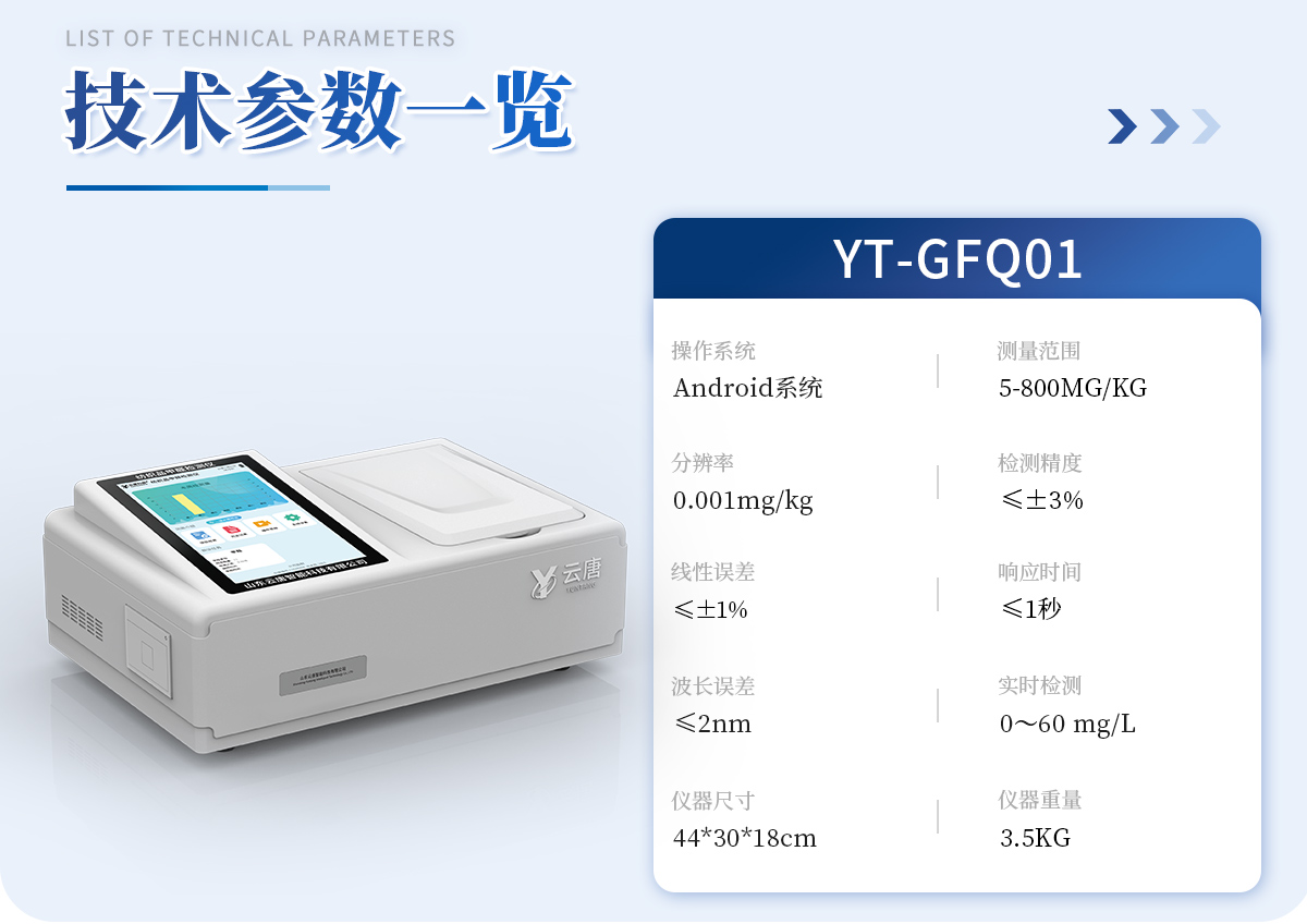 | 1、智能**且方便 | ①智能芯片:主控芯片采用ARM Cortex-A7,RK3288/4核處理器,搭配安卓智能操作系統(tǒng),集實(shí)驗(yàn)操作,分析結(jié)果,打印報(bào)告等功能于一體,使用方便,性能更強(qiáng)。 | ②大屏顯示:采用10.1英寸液晶觸摸屏,單機(jī)即可操作,無(wú)需連接外部顯示或控制器。 | ③多樣同檢:儀器具有12個(gè)檢測(cè)通道,可同時(shí)一次性檢測(cè)11個(gè)樣品,效率更高。 | ④工作預(yù)設(shè):具有任務(wù)預(yù)設(shè)模塊,一鍵提前預(yù)設(shè)樣品所有信息內(nèi)容。來(lái)樣時(shí)可直接檢測(cè),同時(shí)可多次調(diào)取。 | ⑤數(shù)據(jù)分析:設(shè)備首頁(yè)自動(dòng)匯總分析數(shù)據(jù),并繪制柱形分析圖,各項(xiàng)檢測(cè)數(shù)據(jù)一目了然,快捷直觀。 | ⑥高度集成:模塊高度集合,將分光光度模塊、數(shù)字化管理模塊、無(wú)線通訊模塊集成于一體。可將檢測(cè)結(jié)果進(jìn)行分析,直接上傳至數(shù)據(jù)平臺(tái),實(shí)現(xiàn)數(shù)據(jù)共享,方便后期進(jìn)行數(shù)據(jù)分析與統(tǒng)計(jì)。 | ⑦遠(yuǎn)程升級(jí):儀器具備遠(yuǎn)程升級(jí)功能,可遠(yuǎn)程升級(jí)程序,無(wú)需返廠,并可持續(xù)性免費(fèi)更新系統(tǒng)版本,降低成本及運(yùn)輸損耗風(fēng)險(xiǎn)。 | 2、檢測(cè)精準(zhǔn)且直觀 | ①專利技術(shù):精密旋轉(zhuǎn)比色池,使用同芯片同光源校準(zhǔn)精度,解決不同光源之間存在波長(zhǎng)誤差的問(wèn)題,更加準(zhǔn)確**。 | ②結(jié)果直觀:儀器自動(dòng)對(duì)檢測(cè)結(jié)果與國(guó)標(biāo)限量值進(jìn)行對(duì)比,自動(dòng)判定結(jié)果是否合格,結(jié)果更直觀。 | 3、功能強(qiáng)大且實(shí)用 | ①存儲(chǔ)功能:設(shè)備可以存儲(chǔ)數(shù)據(jù)100000組,可在屏幕上直觀查看歷史數(shù)據(jù),可導(dǎo)出數(shù)據(jù)。 | ②打印功能:設(shè)備自帶打印功能,可對(duì)樣品信息及檢測(cè)結(jié)果無(wú)限次隨意打印。 | ③全新方式:新創(chuàng)自定義打印方式,可按需靈活勾選控制:二維碼,抽樣信息、檢測(cè)信息,受檢信息、復(fù)核信息、抽樣日期、檢測(cè)日期等信息的打印 | ④多重編輯:樣品信息可多重編輯,可以對(duì)每個(gè)通道屬性和樣品信息單獨(dú)進(jìn)行編輯,例如樣品信息、抽樣信息、檢測(cè)信息,受檢信息、復(fù)核信息、抽樣日期、檢測(cè)日期等信息等。 | ⑤雙語(yǔ)設(shè)計(jì):全中文/英文操作菜單,簡(jiǎn)單實(shí)用,適用于不同用戶的需求。 |