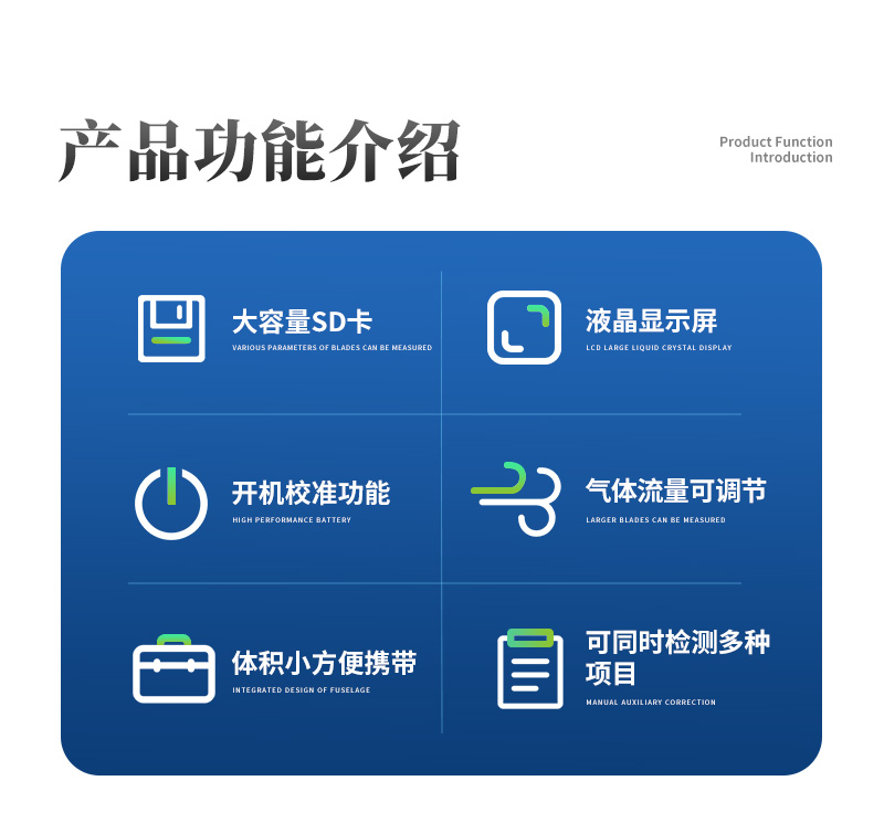 | 中文液晶顯示屏160×320點陣,操作簡單、界面清晰 | 采用大容量SD卡存儲數據,數據存儲量大、導出方便 | 具有開機校準功能,開機時可選擇是否校準,提高儀器的**度 | 配有專用計算呼吸強度軟件,使用者可快速的計算出結果 | 氣體流量可調節 |