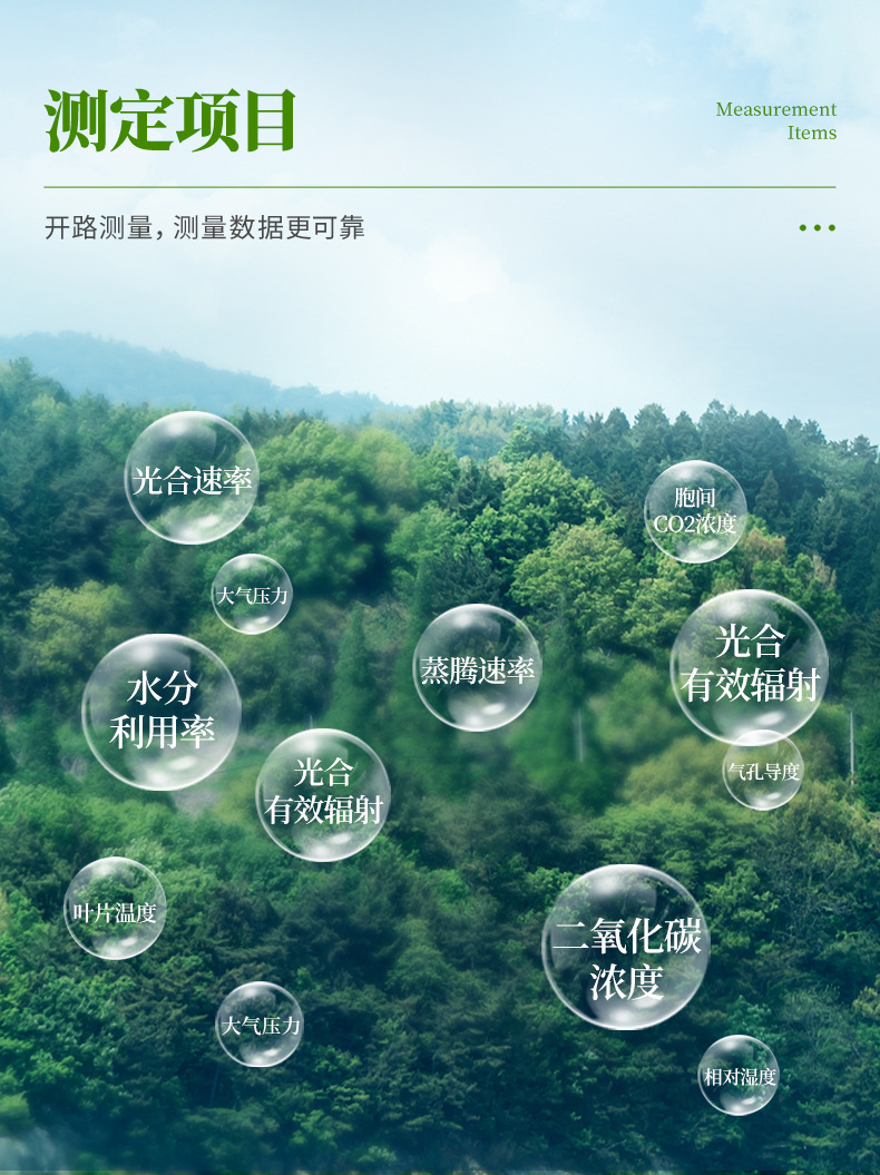 | 非擴散式紅外CO2分析 | 葉片溫度 | 光合有效輻射(PAR) | 葉室溫度 | 葉室濕度 |