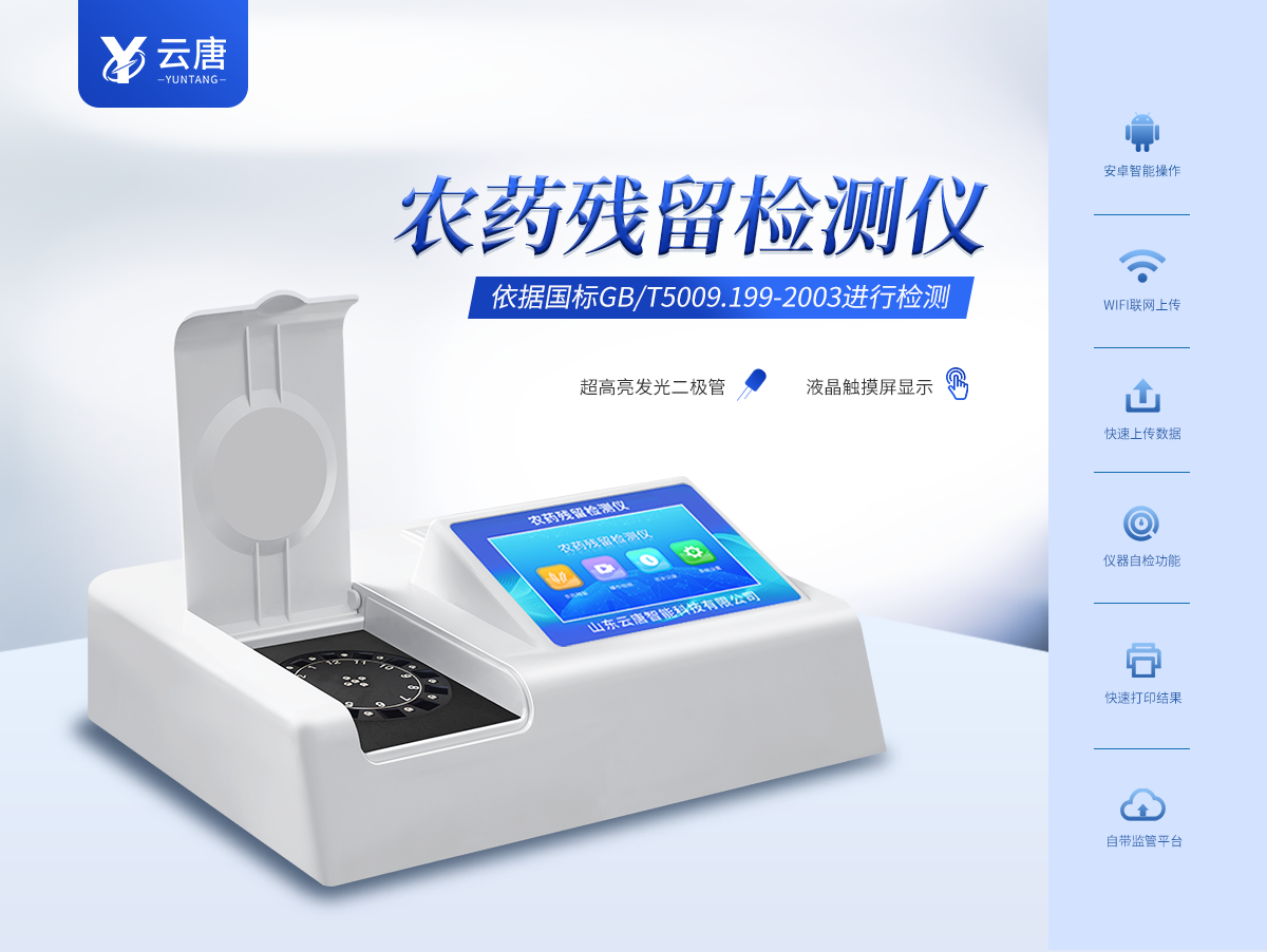 產(chǎn)品描述:產(chǎn)品簡介:山東云唐智能科技有限公司生產(chǎn)的農(nóng)藥殘留檢測儀廣泛應(yīng)用于主要用于蔬菜、水果、茶葉、糧食、農(nóng)副產(chǎn)品等食品中農(nóng)藥殘留的快速檢測,依據(jù)國標(biāo)GB/T5009.199-2003進(jìn)行檢測,適用于果蔬茶生產(chǎn)基地以及農(nóng)貿(mào)批發(fā)銷售市場現(xiàn)場檢測,餐館、學(xué)校、食堂、家庭果蔬加工前的安全速測等。 技術(shù)參數(shù):【詳情】  更新時間:2026-04-03