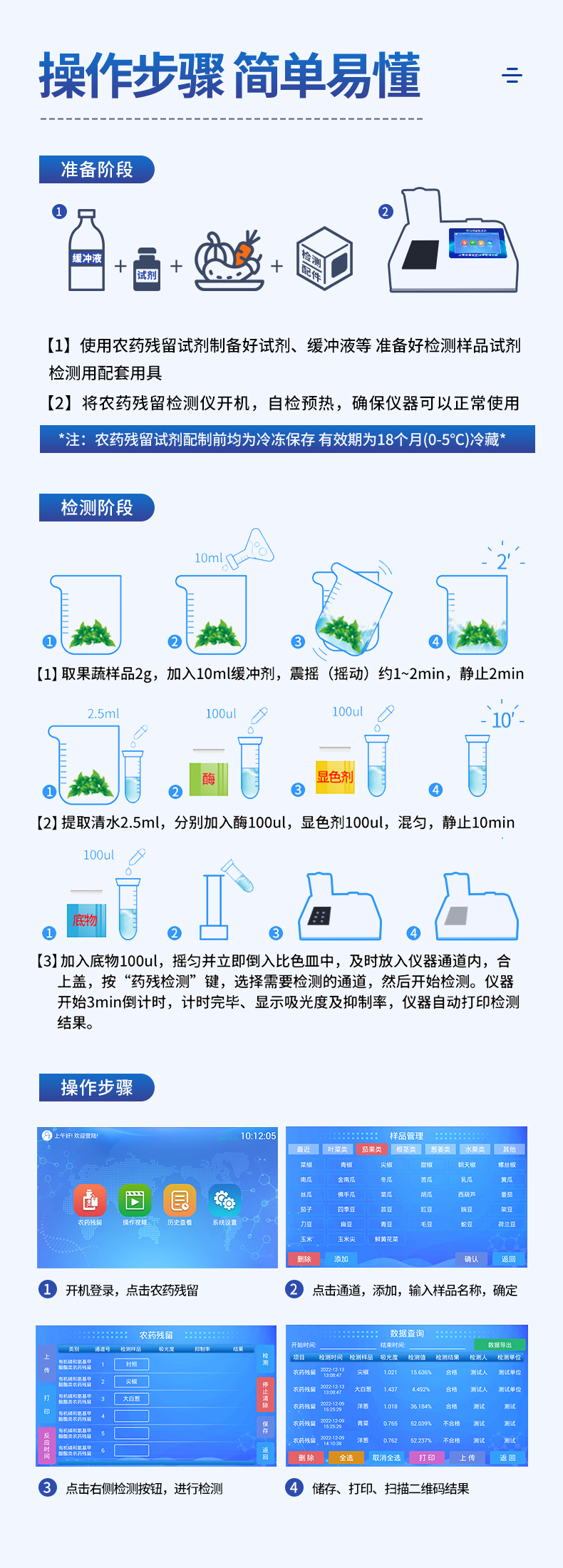 廣泛應用于主要用于蔬菜、水果、茶葉、糧食、農副產品等食品中有機磷和氨基甲酸酯類農藥殘留的快速檢測;此外還可用于果蔬茶生產基地和農貿批發銷售市場現場檢測,餐館、學校、食堂、家庭果蔬加工前的安全速測等。