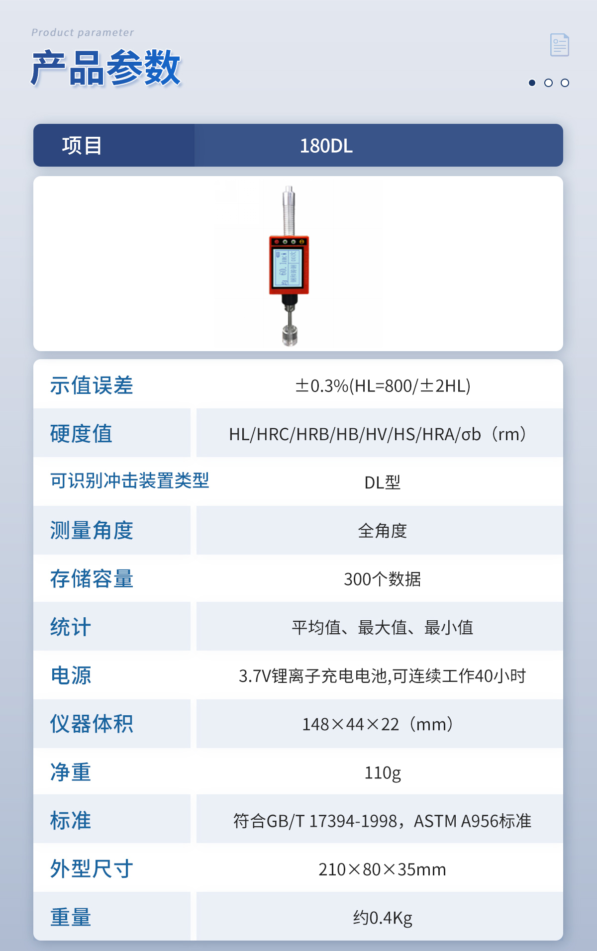 | 標準 | 符合GB/T 17394-1998,ASTM A956標準 |