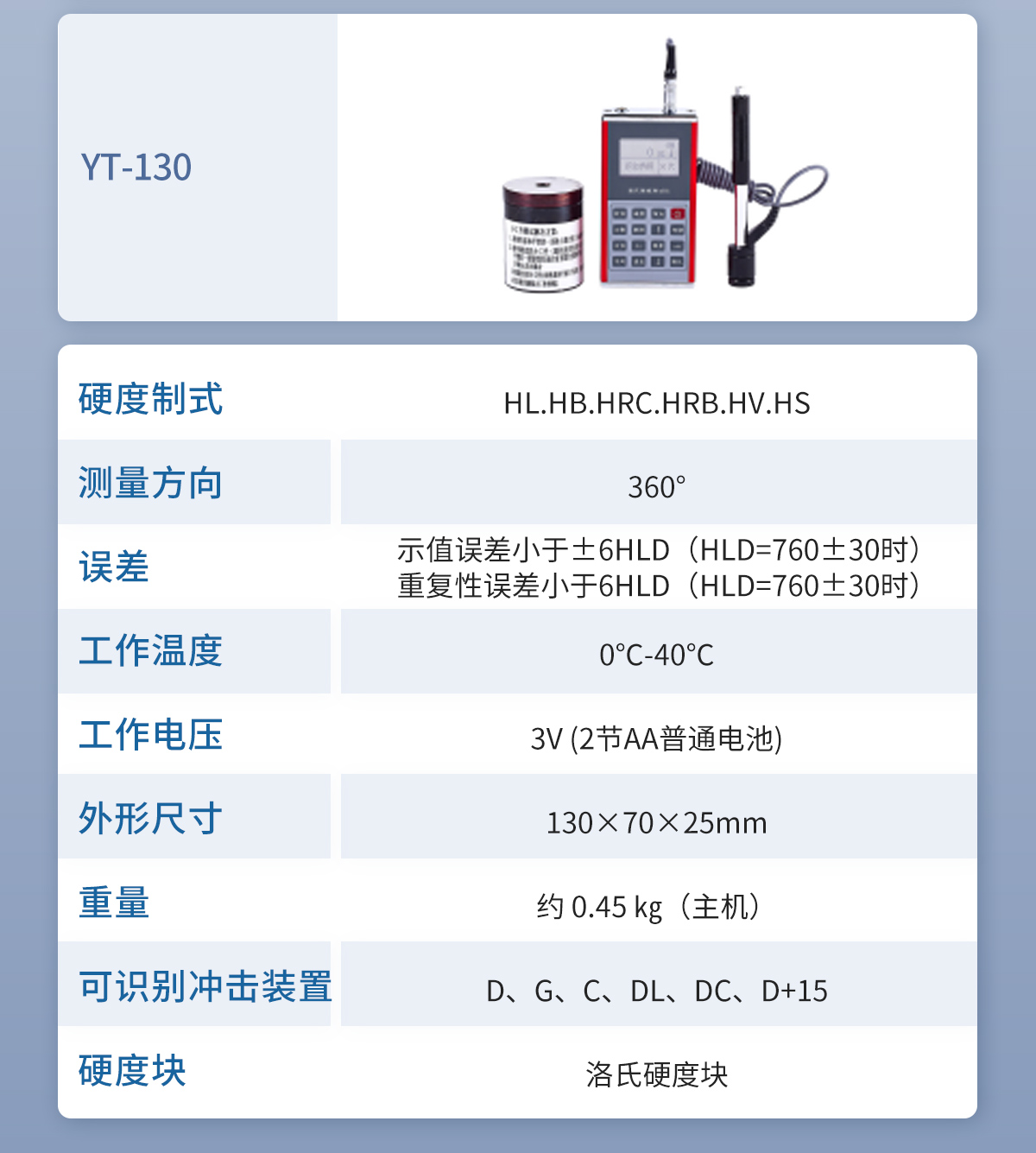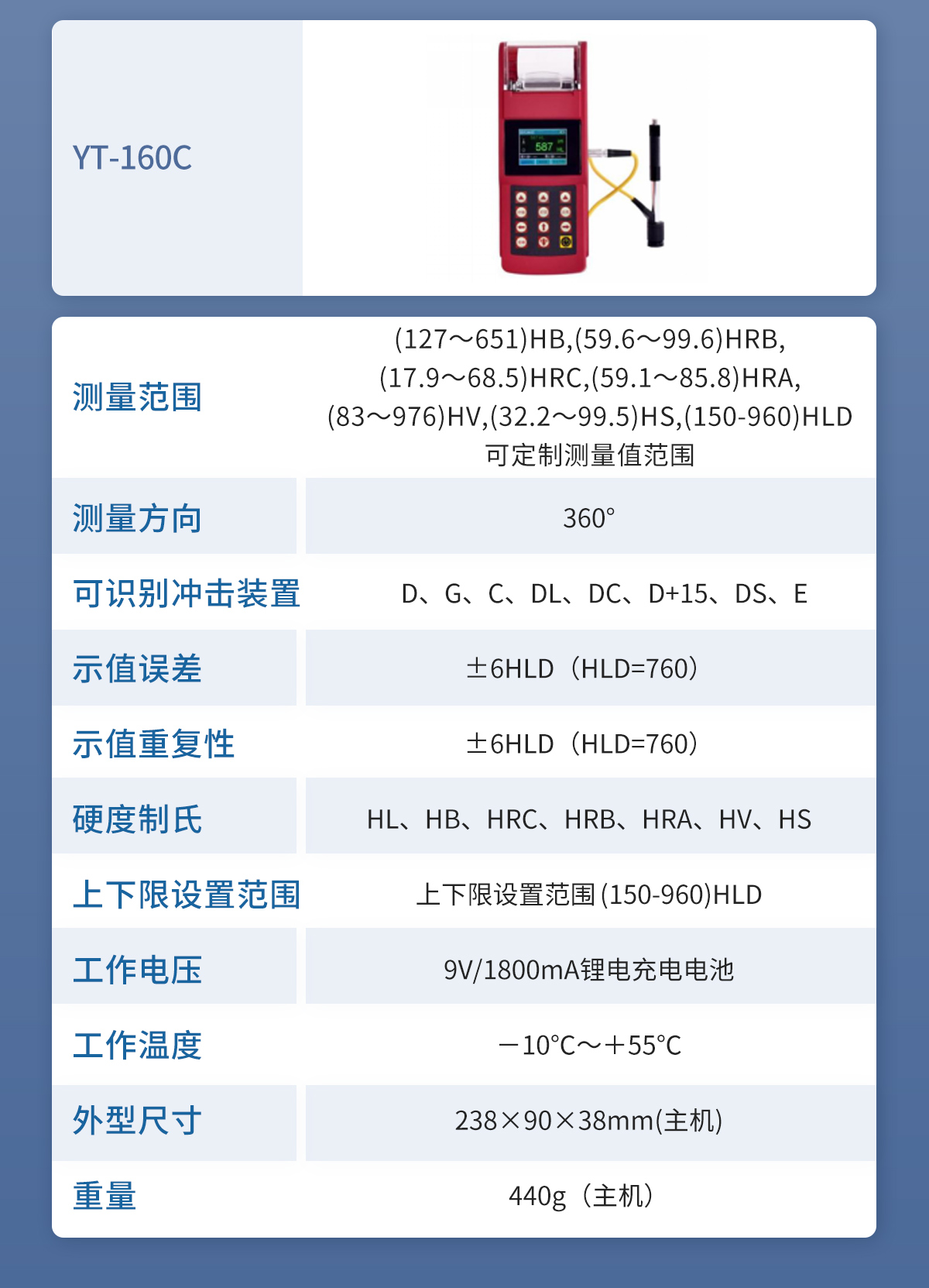 ● 設計依據標準:《里氏硬度計技術條件》 JB/T 9378-2001;