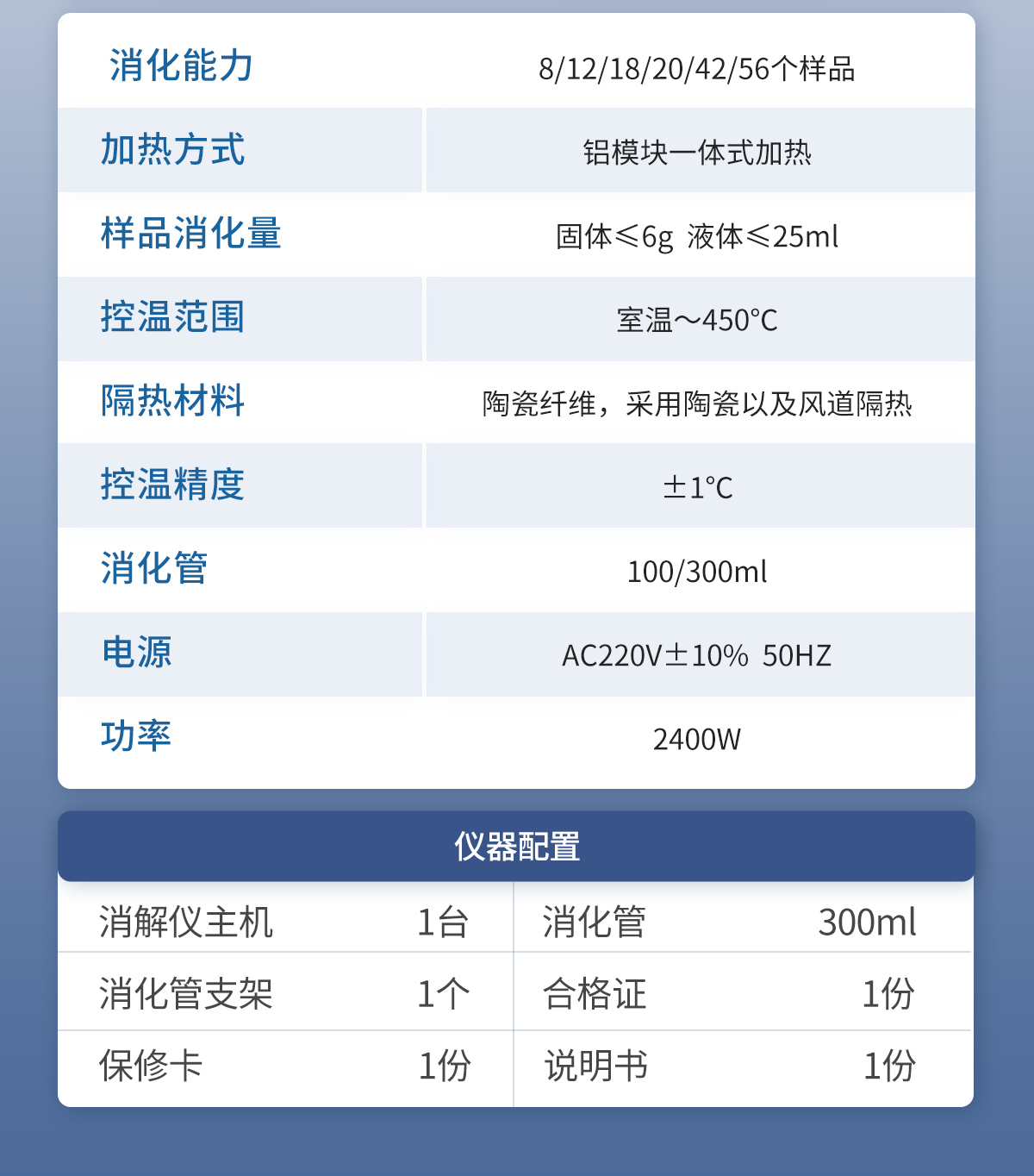 3. 樣品消化量:固體≤6g 液體≤25ml