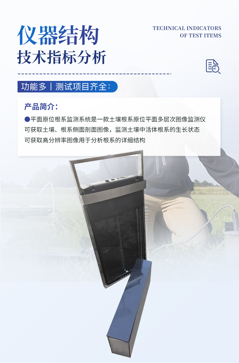 產(chǎn)品描述:產(chǎn)品簡介:平面原位根系監(jiān)測系統(tǒng)是一款土壤根系原位平面多層次圖像監(jiān)測儀,可獲取土壤、根系側(cè)面剖面圖像,監(jiān)測土壤中活體根系的生長狀態(tài),可獲取高分辨率圖像用于分析根系的詳細(xì)結(jié)構(gòu)。利用專業(yè)的原位根系分析軟件可快速的分析計算獲得根長、根表面積、體積、平均直徑、根尖數(shù)等根系形態(tài)參數(shù)。本儀器克服了旋轉(zhuǎn)式根系監(jiān)測儀【詳情】  更新時間:2026-04-16
