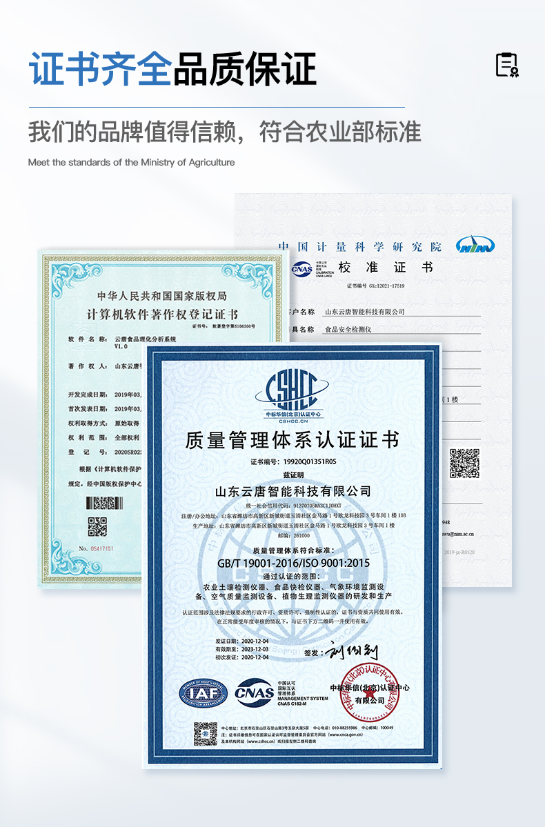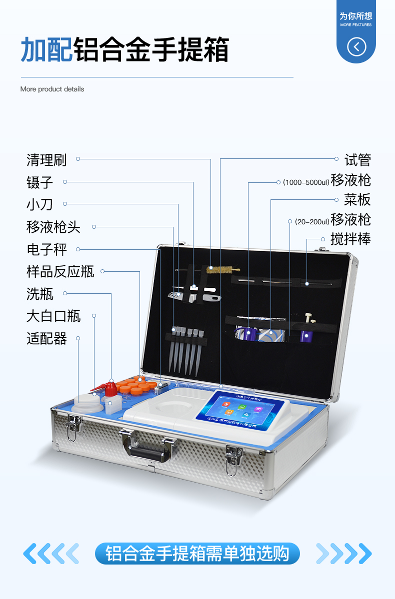 | 安卓智能操作系統(tǒng),采用更加**和人性化操作,儀器具有網(wǎng)線連接、wifi聯(lián)網(wǎng)上傳、GPRS無線遠(yuǎn)傳功能,快速上傳數(shù)據(jù)。 | 智能化程度高,儀器具有自檢功能:具有開機(jī)自檢和調(diào)零功能,具有自動(dòng)檢測(cè)重復(fù)性功能。 | 檢測(cè)通道:≥12個(gè)檢測(cè)通道,可以同時(shí)測(cè)試多個(gè)樣品,每個(gè)樣品由程序控制分別獨(dú)立工作,不會(huì)互相干擾。 | 顯示方式:≥8英寸液晶觸摸屏顯示,人性化中文操作界面,讀數(shù)直觀、簡(jiǎn)單。 | 配備新一代嵌入式熱敏打印機(jī),可選擇手動(dòng)打印或者自動(dòng)打印,檢測(cè)完成可自動(dòng)打印檢測(cè)報(bào)告和二維碼。 | 光源采用進(jìn)口超高亮發(fā)光二極管,高精度、穩(wěn)定性強(qiáng)、光源可控、可以關(guān)掉不使用的光源,功耗更低。 | 采用USB2.0接口設(shè)計(jì),方便數(shù)據(jù)的存貯和移動(dòng),并可隨時(shí)與計(jì)算機(jī)直接相連,并且可用計(jì)算機(jī)控制儀器。實(shí)現(xiàn)數(shù)據(jù)查詢、瀏覽、分析、統(tǒng)計(jì)、打印等。 | 儀器帶有監(jiān)管平臺(tái)。數(shù)據(jù)可局域網(wǎng)和互聯(lián)網(wǎng)數(shù)據(jù)上傳,檢測(cè)結(jié)果直接傳至食品安全監(jiān)管平臺(tái)。進(jìn)行區(qū)域食品安全監(jiān)管及大數(shù)據(jù)分析處理,檢測(cè)區(qū)域食品安全長(zhǎng)短期動(dòng)態(tài),達(dá)到食品安全問題預(yù)估、預(yù)警 | 一體化便攜式快檢設(shè)備,滿足現(xiàn)場(chǎng)及流動(dòng)檢測(cè)使用需求,能夠在同一軟件下實(shí)現(xiàn)所有檢測(cè)項(xiàng)目的檢測(cè),并可通過同一窗口直觀顯示檢測(cè)結(jié)果。 | 儀器具有多品類多種類樣品菜單庫(kù),可靈活選擇檢測(cè)樣品,不同的檢測(cè)通道可同時(shí)檢測(cè)不同的樣品項(xiàng)目。也可在儀器上直接編輯錄入樣品名稱、檢測(cè)指標(biāo)、送檢單位等信息并保存進(jìn)樣品數(shù)據(jù)庫(kù)。 | 樣品處理簡(jiǎn)單省力,整體操作快速、安全、便捷。 | 儀器具有自身保護(hù)功能,可設(shè)置用戶名及密碼,防止非工作人員操作等。 | 高靈敏度,高檢測(cè)精度,高重復(fù)性精度,掃描式高精度光學(xué)傳感器。 | 內(nèi)置強(qiáng)大的數(shù)據(jù)庫(kù),可在儀器上直接選擇樣品名稱、檢測(cè)指標(biāo)、送檢單位等信息,也可在儀器上直接編輯錄入樣品名稱、檢測(cè)指標(biāo)、送檢單位等信息并保存進(jìn)樣品數(shù)據(jù)庫(kù)。 | 儀器具有重新校準(zhǔn)、鎖定、恢復(fù)出廠設(shè)置功能。 | 支持U盤存儲(chǔ)。 結(jié)果判定線可修改,對(duì)照值標(biāo)定值可保存,斷電不丟失數(shù)據(jù)。 |