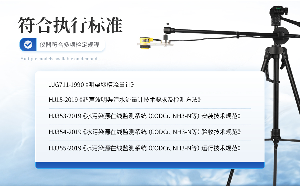 JJG 711-1990 《明渠堰槽流量計(jì)》 ZJJ-LR-01-2022《超聲波明渠流量計(jì)試行檢定規(guī)程》 HJ 15-2019 《超聲波明渠污水流量計(jì)技術(shù)要求及檢測方法》 HJ 353-2019 《水污染源在線監(jiān)測系統(tǒng)(CODCr、NH3-N等)安裝技術(shù)規(guī)范》 HJ 354-2019 《水污染源在線監(jiān)測系統(tǒng)(CODCr、NH3-N 等)驗(yàn)收技術(shù)規(guī)范》 HJ 355-2019 《水污染源在線監(jiān)測系統(tǒng)(CODCr、NH3-N等)運(yùn)行技術(shù)規(guī)范》
