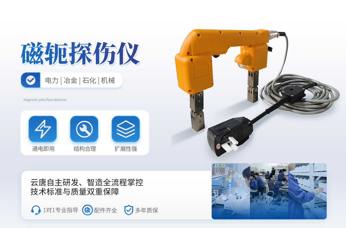 產品描述:設備簡介: YT-CTS220C型電磁軛磁粉探傷儀,無主機設計,操作簡單方便,噪音小、重量輕、工作穩定。配直流磁化電源(鋰電),具有交流與直流磁化功能,適用于野外無電源現場操作以及高壓不能進入的容器、橋梁、管道等現場操作,一次充電連續工作時間可達6小時以上。交流供電電源采用~220V電源直接輸入,無需【詳情】  更新時間:2026-04-08