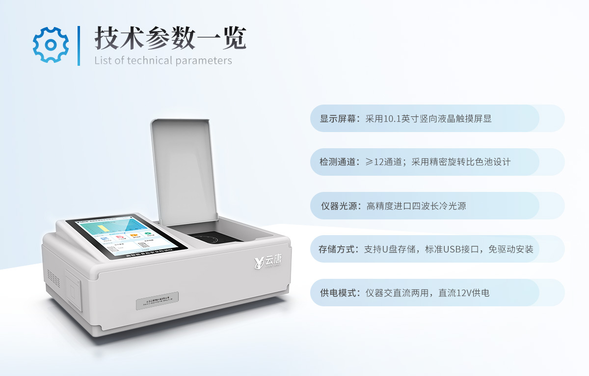 | 儀器采用手提式一體化系統(tǒng)檢測技術(shù),將分光光度模塊、膠體金檢測模塊、新型農(nóng)殘檢測模塊、數(shù)字化管理模塊、無線通訊模塊高度集成于一體,支持檢測200種食品安全檢測項目,同時預(yù)留升級檢測方法。 | 儀器檢測模塊標(biāo)準(zhǔn)化、智能化,檢測項目可隨意自由組合。檢測箱體內(nèi)置多個標(biāo)準(zhǔn)檢測單元,檢測模塊可以調(diào)整配置。 | 顯示屏幕:儀器采用10.1英寸豎向液晶觸摸屏顯,搭配運行安卓智能操作系統(tǒng),主控芯片采用ARM Cortex-A7,RK3288/4核處理器,主頻1.88Ghz,操作方便,性能更強。 | 檢測通道:≥12通道;采用精密旋轉(zhuǎn)比色池設(shè)計,使用同芯片同光源校準(zhǔn)精度,解決不同光源之間的誤差值,更加準(zhǔn)確**。(1-12通道間誤差0.1%,***:**202022821055.2) | 儀器光源:高精度進口四波長冷光源,每個通道均配置 410、520、590、630nm 波長光源,標(biāo)配**的光路切換裝置,專利光路切換功能可實現(xiàn)64波長,并且所有檢測項目可實現(xiàn)所有通道同時檢測。 | 設(shè)備可一鍵校準(zhǔn),自動保存校準(zhǔn)數(shù)據(jù),自動對比校驗,得到精準(zhǔn)光源,采用Android SP存儲數(shù)據(jù),光源數(shù)據(jù)永不丟失,方便每一次使用。 | 通訊接口:配備無線通信模塊、4G(APN)通訊模塊、藍牙傳輸,同時具有雙USB接口以及RJ45網(wǎng)線接口,可以多方式實現(xiàn)數(shù)據(jù)保存及數(shù)據(jù)傳輸 | 存儲方式:支持U盤存儲,標(biāo)準(zhǔn)USB接口,免驅(qū)動安裝。檢測結(jié)果存儲容量20萬條以上,可生成Excel表格進行拷貝,并具有登錄保護功能。 | 智能化操作系統(tǒng): | 1)操作系統(tǒng):儀器可在同一檢測界面自動對應(yīng)相關(guān)檢測通道,一次性選擇1-12個樣品名稱,無需退出界面,節(jié)省操作時間。并可以對每個通道屬性和樣品信息單獨進行編輯,例如送檢單位、人員,檢測人員等,打印時勾選打印顯示。 | 2)數(shù)據(jù)集成系統(tǒng):設(shè)備首頁自動匯總分析檢測數(shù)據(jù),包含:周檢測數(shù)據(jù)、月檢測數(shù)據(jù),全部檢測總數(shù)量,均包含檢測總數(shù),合格數(shù),不合格數(shù),以及相關(guān)柱形分析圖,各項檢測數(shù)據(jù)一目了然,無需電腦查詢,更加快捷直觀。 | 3)數(shù)據(jù)庫系統(tǒng):十幾項數(shù)據(jù)庫分類管理儀器:包含項目類型、項目數(shù)據(jù)、檢測數(shù)據(jù)、歷史記錄、國標(biāo)信息、曲線信息、采樣信息、檢測信息、受檢信息、復(fù)核信息、圖表信息、光源校準(zhǔn)信息、打印樣式信息、樣品庫信息等等,數(shù)據(jù)庫之間互相協(xié)調(diào)聯(lián)動保證數(shù)據(jù)的真實完整性。同時產(chǎn)品數(shù)據(jù)庫以及歷史檢測記錄支持一鍵檢索功能。 | 4)限量規(guī)判系統(tǒng):具有限量查詢、添加物質(zhì)合規(guī)判定系統(tǒng)。檢測出結(jié)果后,系統(tǒng)自動調(diào)用系統(tǒng)數(shù)據(jù)庫中相關(guān)國標(biāo)進行比對判定,客觀顯示判定結(jié)果是否合格。 | 5)項目預(yù)設(shè)系統(tǒng):儀器具有任務(wù)預(yù)設(shè)模塊,一鍵提前預(yù)設(shè),給出方便快捷的新檢測方案,每一個任務(wù)分別可以設(shè)置不同的樣品、批次、編號、來源、備注、抽樣信息、檢測信息、受檢信息、復(fù)核信息等更多信息。樣品送檢時一鍵調(diào)取保存信息,并可多次調(diào)取,大大提高檢測效率。 | 6)數(shù)據(jù)監(jiān)管系統(tǒng):同步對接監(jiān)管平臺,數(shù)據(jù)可局域網(wǎng)和互聯(lián)網(wǎng)數(shù)據(jù)上傳,檢測結(jié)果可選擇直接傳至食品安全監(jiān)管平臺。進行區(qū)域食品安全監(jiān)管及大數(shù)據(jù)分析處理與數(shù)據(jù)統(tǒng)計,檢測區(qū)域食品安全長短期動態(tài),達到食品安全問題預(yù)估、預(yù)警。 | 7)打印系統(tǒng):內(nèi)置全新打印機,新創(chuàng)自定義打印方式,可按需靈活勾選控制:產(chǎn)品合格證(國家農(nóng)業(yè)部標(biāo)準(zhǔn)要求),二維碼,抽樣信息、檢測信息,受檢信息、復(fù)核信息、抽樣日期、檢測日期等信息的打印。 | 供電模式:儀器交直流兩用,直流12V供電,可連接車載電源,可配6ah大容量充電鋰電池,電量可實時顯示,方便戶外流動測試。 | 膠體金檢測模塊:采用雙通道CMOS成像處理技術(shù)及膠體金免疫層析技術(shù),可同時讀取雙膠體金卡數(shù)據(jù),自動采集、處理分析,將檢測結(jié)果顯示,并可根據(jù)參考限值自動判斷檢測結(jié)果,可檢測常見的獸藥殘留、生物毒素、抗生素、違禁添加物等。 | 1)探測技術(shù):CMOS成像探測; | 2)檢測通道:3通道,可同時讀取3個膠體金卡數(shù)據(jù); | 3)檢測方式:消線法和比色法; | 4)顯示模式:陰性或陽性; | 5)曲線形式:直插式掃描方式,顯示金標(biāo)卡圖像,實時生成、識別CT曲線圖,無需手動調(diào)整,完成檢測后自動退出檢測卡。兼容市場上其他金標(biāo)卡,使用耗材不受限制。 | 儀器加入遠程升級功能,可定向分客戶分儀器更新,開機后自動更新,客戶無需任何操作,即可升級全新項目。做到了無需退換機器即可實現(xiàn)實時遠程升級檢測儀器。 |
