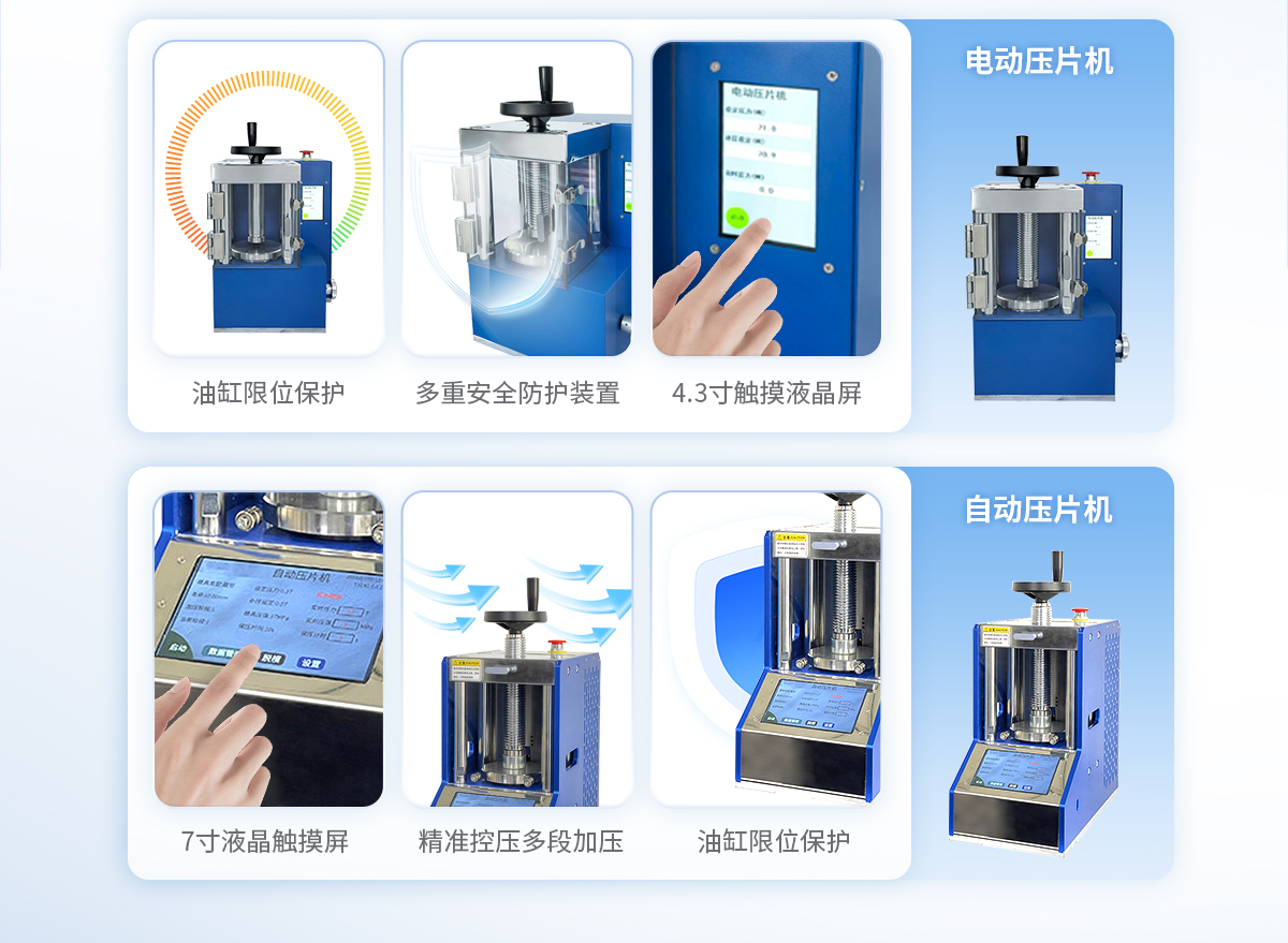 該機是我司結合現(xiàn)有壓片機在高校老師的提議和支持下,開發(fā)出的第三代自動款壓片機。本次升級進行了多項優(yōu)化和改進,配置7寸觸摸液晶屏,程序控制在升級,實現(xiàn)了精準控壓,滿足了客戶多段加壓的需求,另外還增設了很多安全配置,適合**實驗室使用。