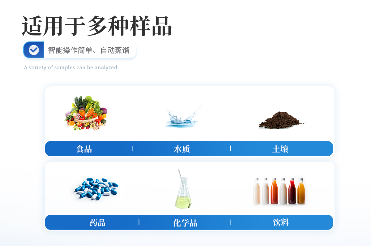 | Ⅰ 水質標準: 1.GB/T 5750.5-2023 生活飲用水標準檢驗方法 無機非金屬指標 2. HJ 484-2009 水質氰化物的測定 容量法和分光光度法 3. HJ 503-2009 水質揮發酚的測定 4-氨基安替比林分光光度法 4. HJ 502-2009 水質揮發酚的測定 溴化容量法 5. HJ 1226-2021 水質硫化物的測定 亞甲基藍分光光度法 6. HJ 1191-2021 水質疊氮化物的測定 分光光度法 7. HJ 535-2009 水質氨氮的測定 納氏試劑分光光度法 8. HJ 536-2009 水質氨氮的測定 水楊酸分光光度法 9. HJ 537-2009 水質氨氮的測定 蒸餾-中和滴定法 | Ⅱ 土壤和沉積物標準: 1.HJ 745-2015 土壤氰化物和總氰化物的測定 分光光度法 2. HJ 998-2018土壤和沉積物揮發酚的測定 4-氨基安替比林分光光度法 3. HJ 833-2017 土壤和沉積物硫化物的測定 亞甲基藍分光光度法 4. HJ 717-2014 土壤質量全氮的測定 凱氏法 | Ⅲ 食品標準: 1.GB 8538-2022食品安全國家標準 飲用天然礦泉水檢驗方法 2.GB 5009.36-2023食品安全國家標準 食品中氰化物的測定 3.GB 5009.225-2023食品安全國家標準 酒和食用酒精中乙醇濃度的測定 4. GB 5009.266-2016食品安全國家標準 食品中甲醇的測定 |
